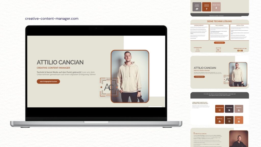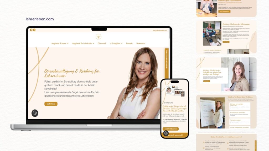 Website, die auf allen Geräten deine Kund:innen abholt. Dein Design wird nicht nur auf PC, Tablet und Handy gut aussehen, sondern auch benutzerfreundlich und auf die Bedürfnisse deiner Zielgruppe ausgerichtet sein. Gemeinsam stellen wir sicher, dass deine Seite modern, funktional und ansprechend bleibt.